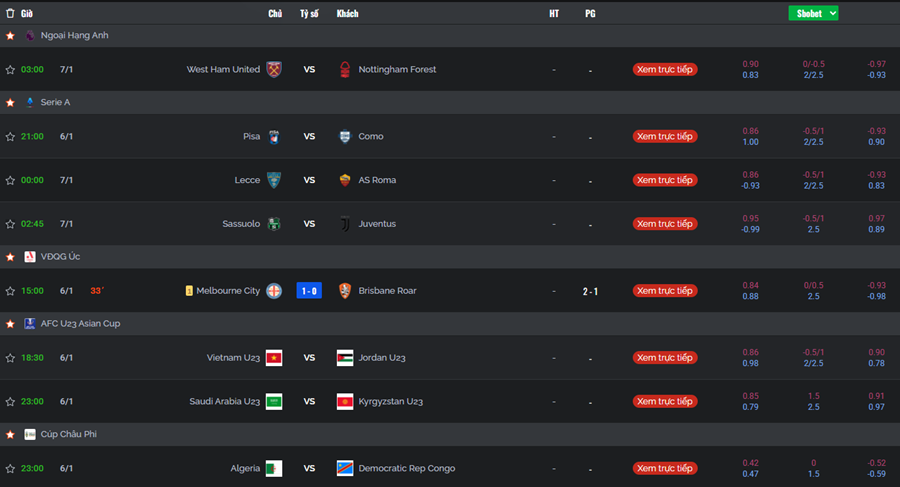 Tại đây, lịch bóng đá của các giải lớn như Ngoại Hạng Anh, Champions League, La Liga, Serie A, Bundesliga… luôn được cập nhật đầy đủ và hiển thị rõ ràng. Bên cạnh đó, trang web này cũng không bỏ quên bóng đá Việt Nam với lịch thi đấu V-League, Cúp Quốc Gia hay các trận của đội tuyển quốc gia.